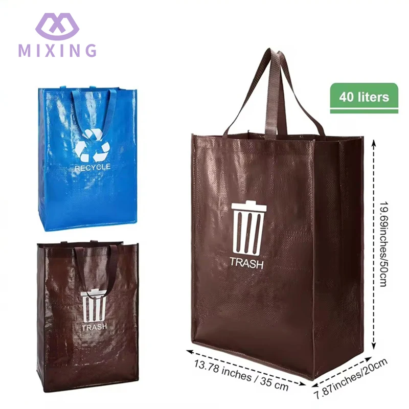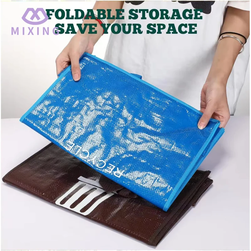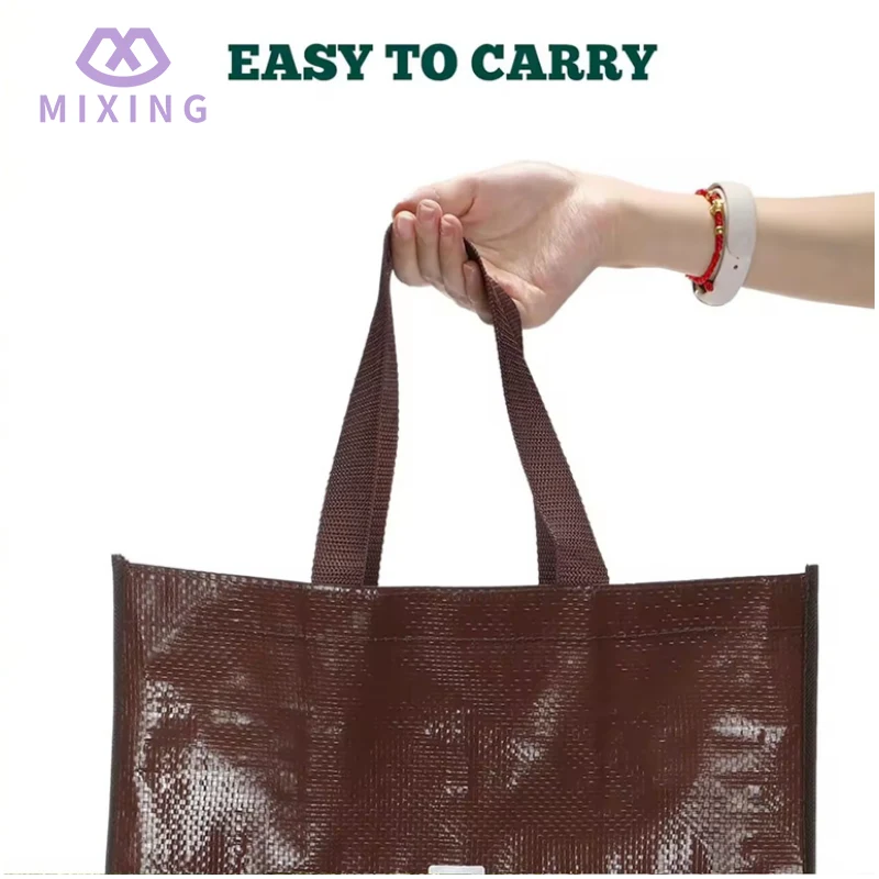 Le borse tote in tessuto PP da 40 litri di Mixing's China sono realizzate in tessuto spesso, che ha una trama distinta quando viene toccato, non è il tipo di materiale sottile, morbido e facilmente deformabile, la trama è ben disposta. Quando si riempiono gli oggetti, non si forerà facilmente a causa degli angoli acuti degli oggetti. Anche se vengono riempiti diversi barattoli di salsa, diversi libri spessi e altri oggetti un po' pesanti, il corpo del sacchetto può rimanere comunque croccante. Non si attaccherà agli oggetti in modo morbido e molle.