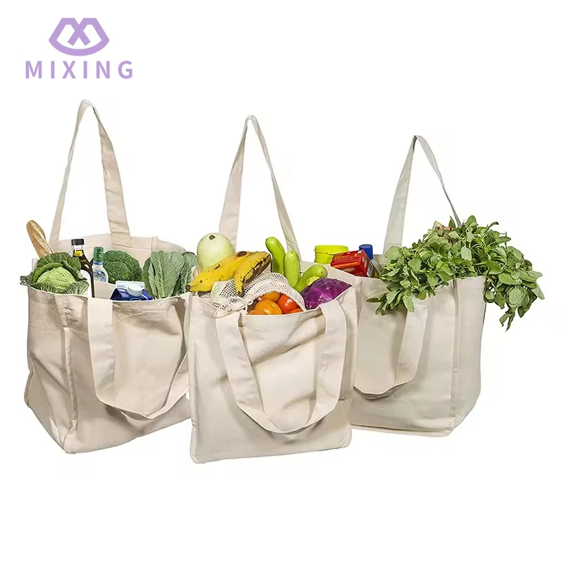 Le borse per la spesa in tela di Mixing sono realizzate in tela spessa e strutturata, non saranno morbide e friabili come il tessuto sottile. Possono mantenere una forma nitida quando sono riempiti di oggetti e non deformano gli oggetti all'interno, anche se riempiti con oggetti più pesanti, il corpo della borsa può tenerli saldamente.
