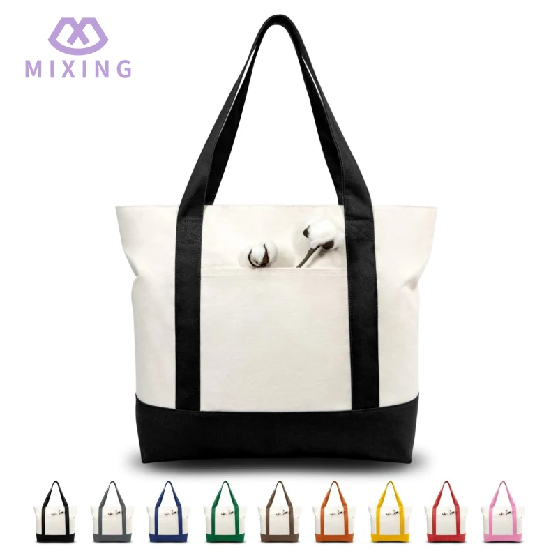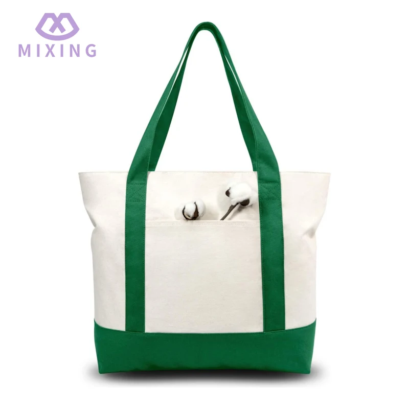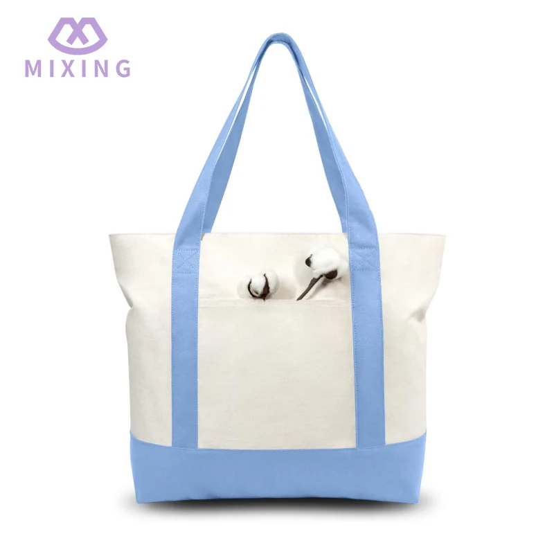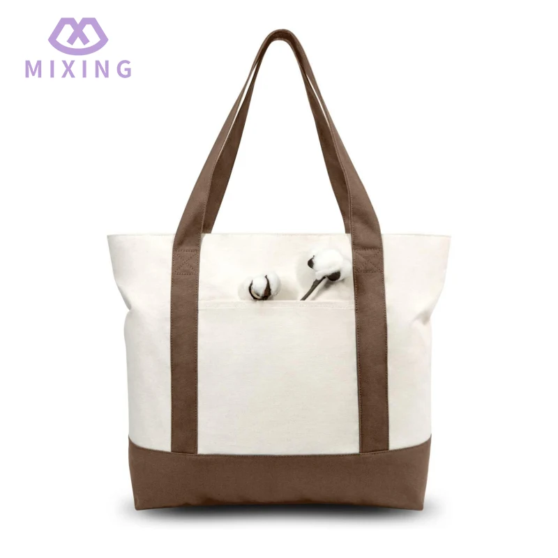 La borsa tote in tela cinese con tasca esterna di Mixing è realizzata in tela spessa ma non ingombrante, dopo aver caricato le cose, può mantenere una forma nitida. Anche se vengono caricati diversi libri o una bottiglia d'acqua, il corpo della borsa può trattenerli saldamente senza deformare gli oggetti all'interno.