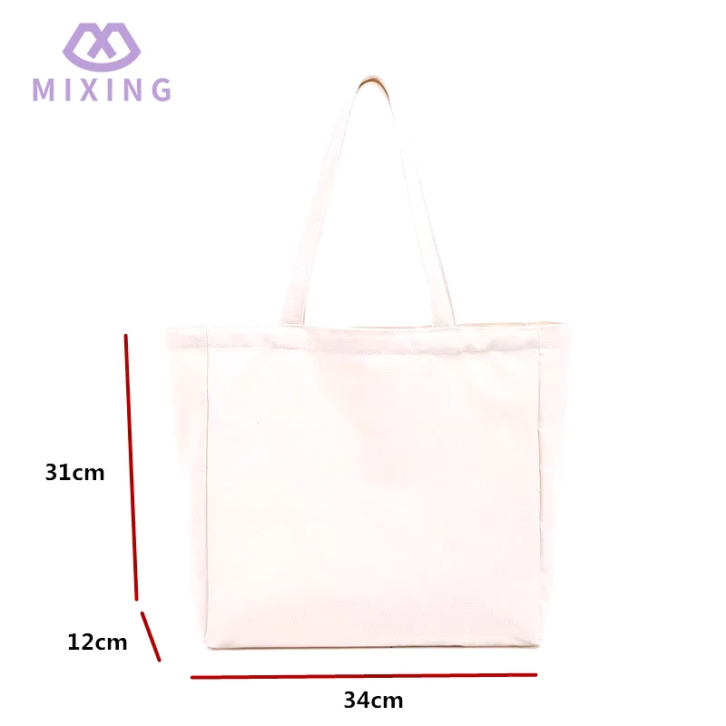 Il tessuto di cotone utilizzato nella borsa shopping in tela di cotone cinese prodotta da Mixing è morbido ma non cedevole, può mantenere un certo grado di rigidità durante il trasporto di oggetti e non si attacca agli oggetti come un sottile sacchetto di plastica.