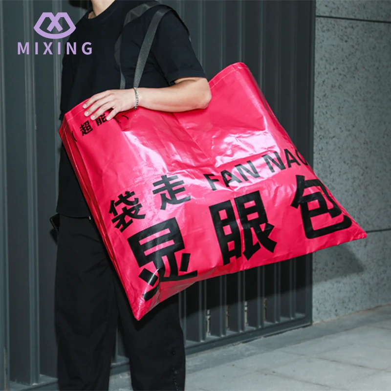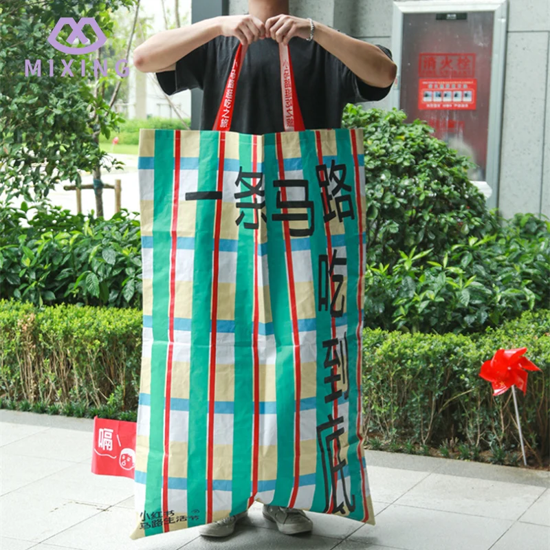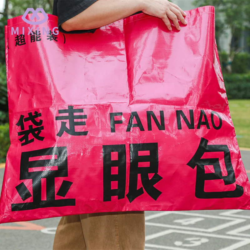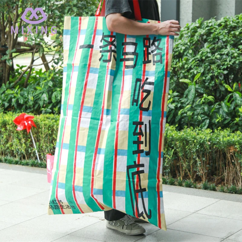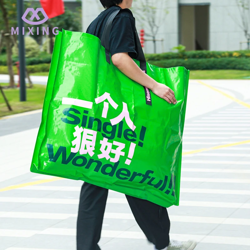 Benvenuti ad acquistare la borsa in tessuto PP gigante personalizzata di Mixing. Che tu abbia bisogno di sistemare la biancheria da letto, i vestiti, le PENTOLE e le padelle quando cambi casa, o fare scorta di snack e oggetti di prima necessità quando fai la spesa al supermercato, o andare in campeggio all'aperto nei fine settimana con tavoli e sedie pieghevoli, tende e pasti, la borsa in tessuto PP prodotta da Mixing può essere imballata tutta in una volta sola. Non è necessario imballarlo in più sacchetti e spostarlo avanti e indietro come al solito.