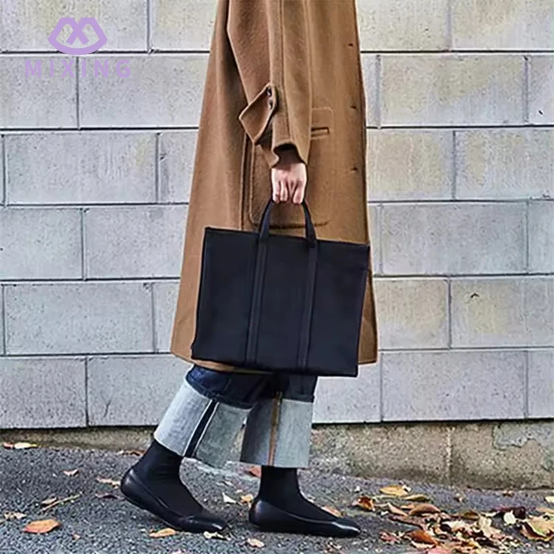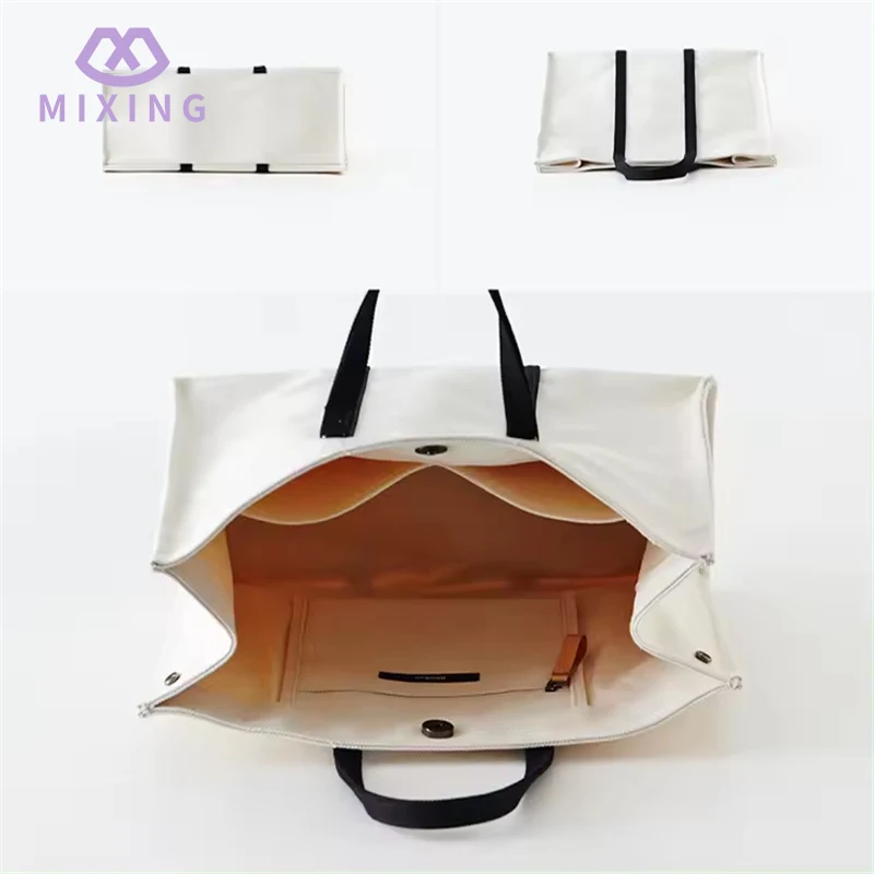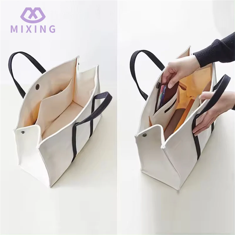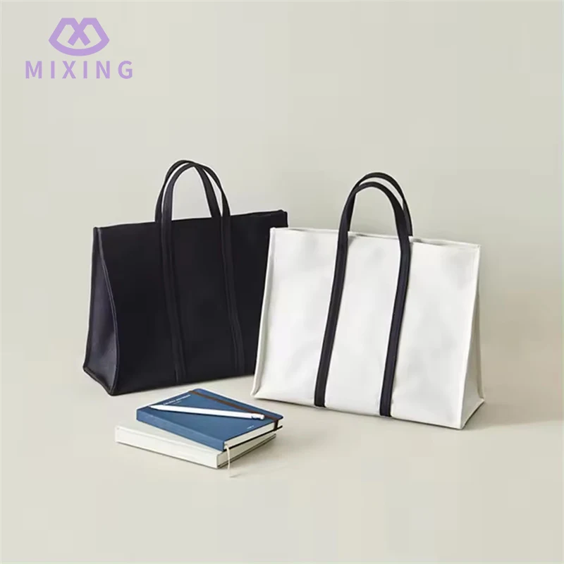 Il materiale in tela utilizzato nella borsa tote in tela semplice con manici prodotta dal fornitore Mixing risulta spesso ma non ingombrante. A differenza di alcune borse di tela sottile che sono morbide e flosce, può mantenere un certo grado di rigidità dopo aver riempito le cose, non deformerà gli oggetti sotto pressione e avrà un aspetto più regolare.