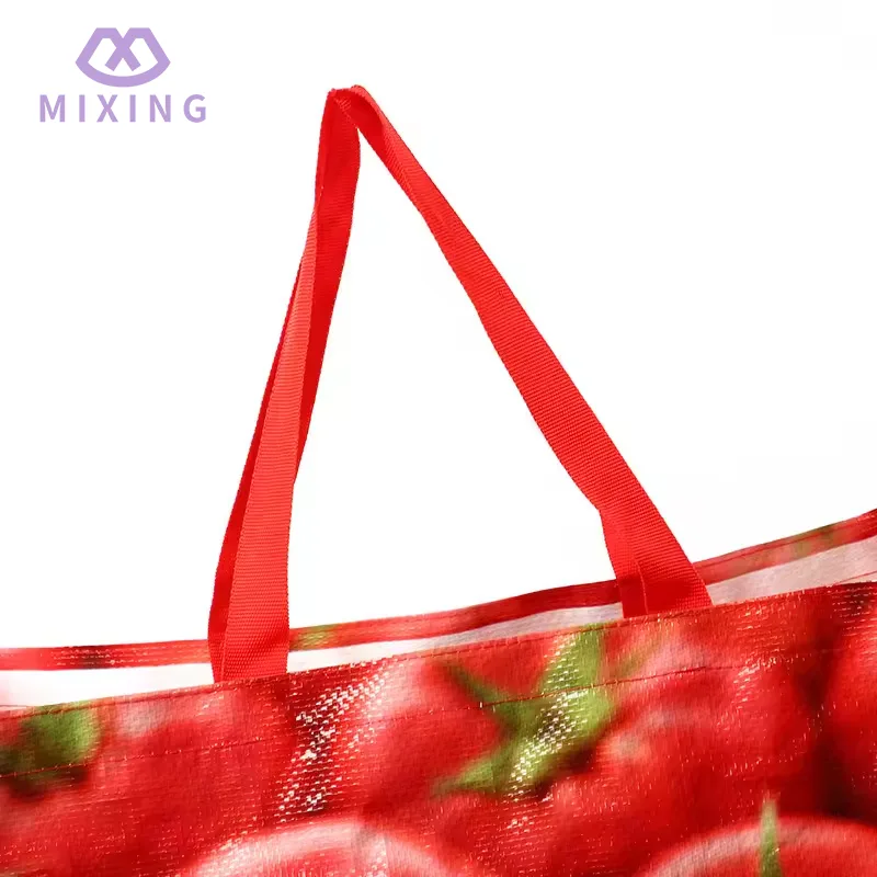 I vantaggi della borsa della spesa in tessuto PP Chins di Mixing sono molto adatti per l'uso quotidiano, ha una durata relativamente elevata. Il materiale intrecciato in PP è resistente e diverso dai normali sacchetti di stoffa sottile che si strappano o si forano facilmente. Anche se occasionalmente porti con te degli oggetti un po' più pesanti, come qualche bottiglia di bibita o della frutta, non devi preoccuparti che la borsa si danneggi facilmente.