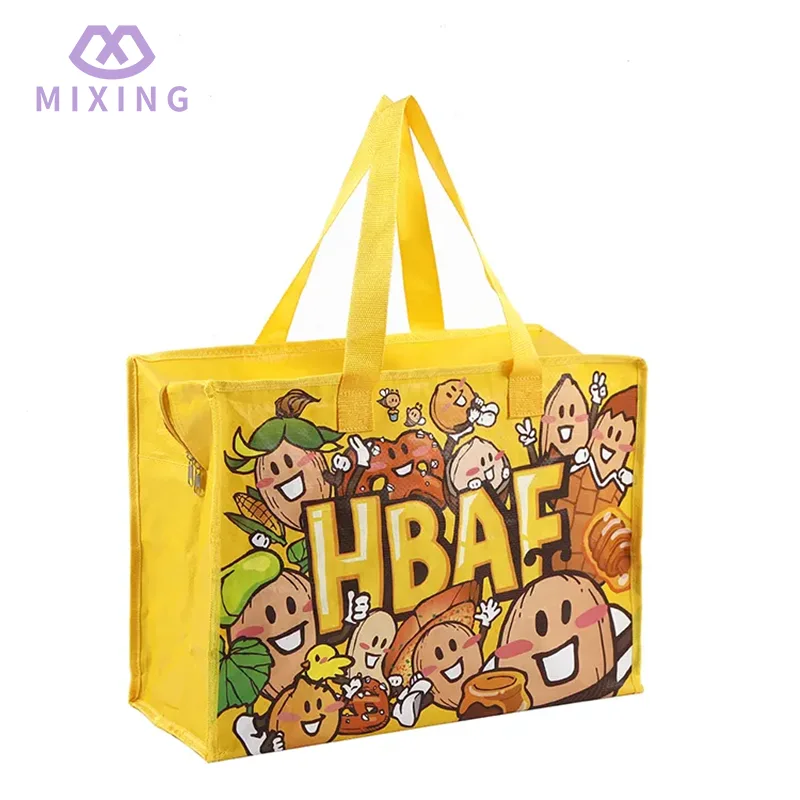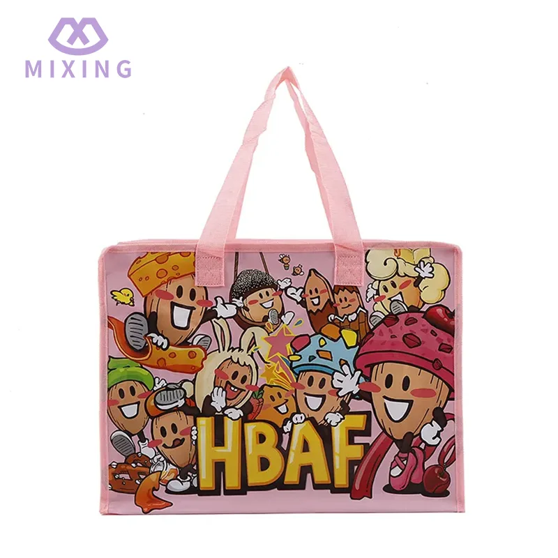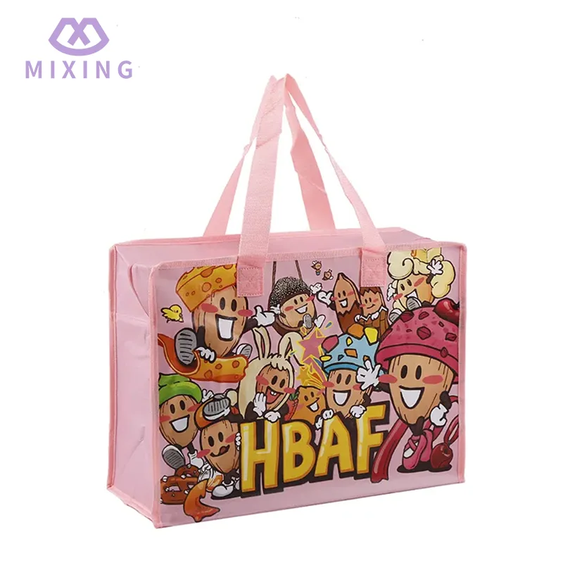 La borsa tote in tessuto PP con cerniera fornita dal fornitore Mixing è molto adatta per l'uso quotidiano, la proprietà di tenuta portata dalla cerniera la rende molto agevole da tirare e chiudere senza inceppamenti. Quando carichi piccoli oggetti come forcine o monete, non devi preoccuparti di perderli tirando la cerniera. Quando metti qualcosa leggermente umido, come il pane sfuso appena acquistato o la frutta lavata, puoi anche ridurre le infiltrazioni d'acqua e proteggere gli oggetti all'interno.