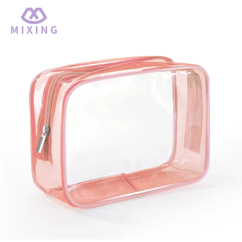 La miscelazione di una borsa cosmetica trasparente duratura è stampata con logo del marchio e disponibile in una varietà di dimensioni. Realizzato in materiale in PVC di alta qualità, è leggero e resistente. Il materiale trasparente ti consente di vedere chiaramente il contenuto della borsa.