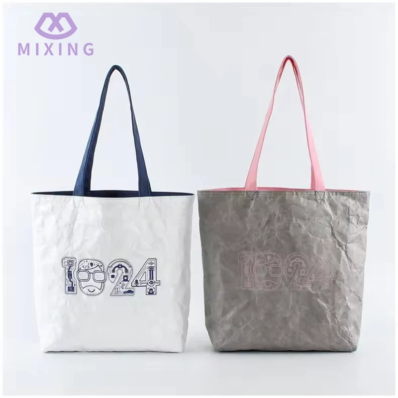 In termini di materiale, le borse tote Tyvek sono realizzate in carta DuPont, che è un po' rigida. Quando viene toccato, sembra un po' come un cartoncino spesso e resistente, ma è più morbido del cartoncino. Quando pizzicato, rimbalza senza lasciare pieghe. Quando si trasportano oggetti, il corpo della borsa può essere allungato. Non è del tipo che sembra morbido e si attacca alla mano non appena è pieno di libri, sembra pulito e ha una buona consistenza quando viene tenuto in mano, non sembra economico.